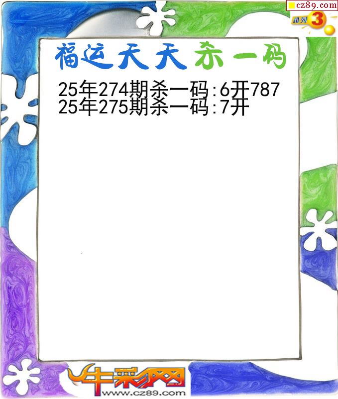 福运天天杀一码275期体彩P3图谜