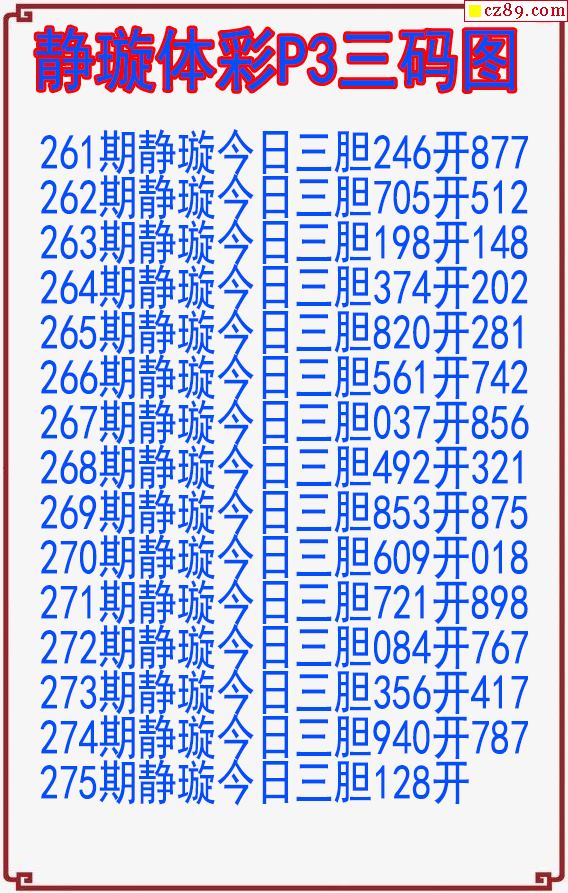 首页 > 排列3图谜 > 25年275期静璇体彩P3三码图